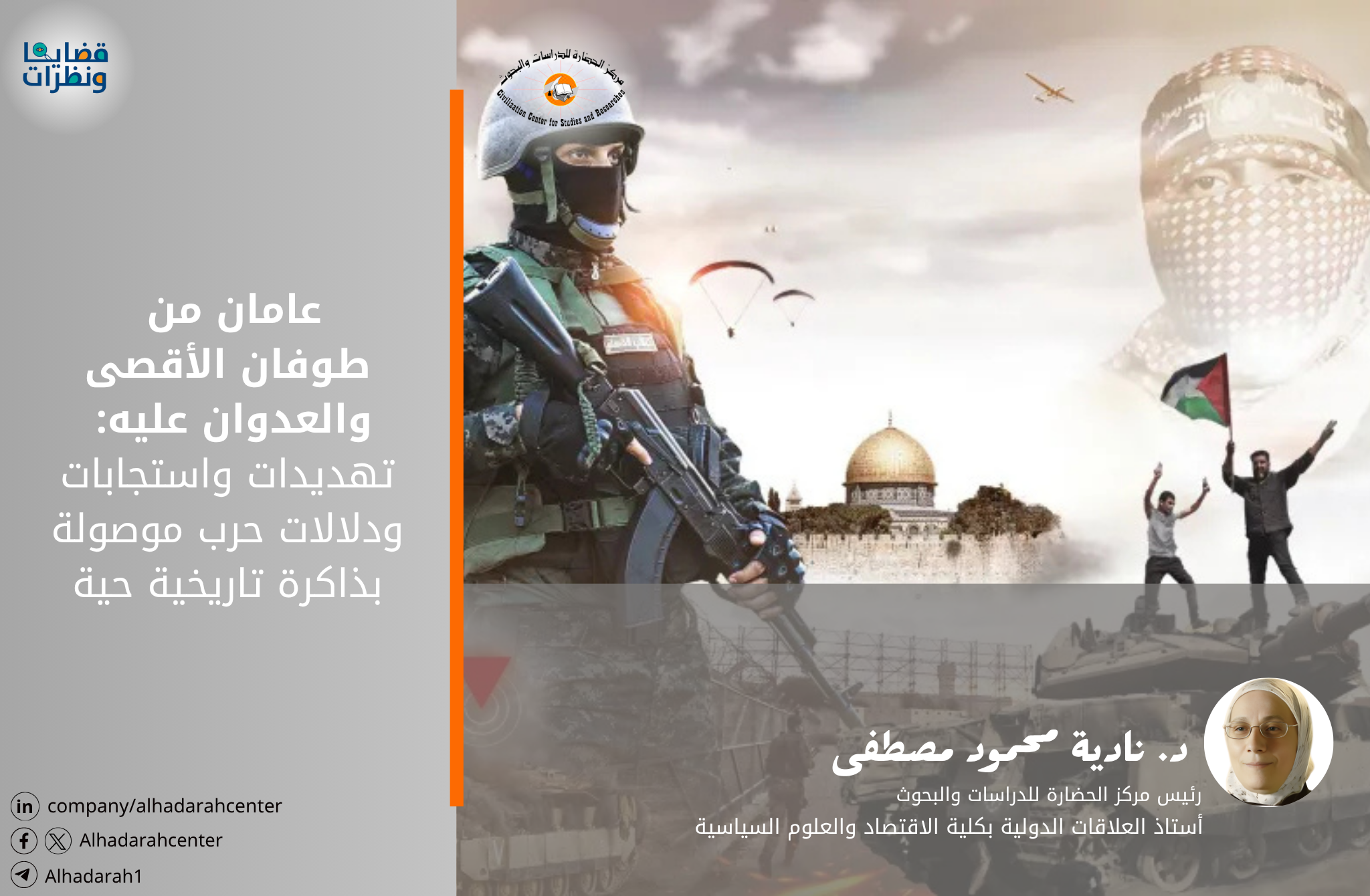وفي هذا الإطار، أطرح رؤية تتألف من ثلاث حلقات من الدلالات: من الذاكرة التاريخية للأمة عبر قرون، إلى الذاكرة التاريخية المعاصرة عبر القرن العشرين، إلى ذاكرة راهنة يسطرها الطوفان وتداعياته عبر عامين، قبل أن أختم بتلخيص لعبرة التاريخ بين خياري الصمود والاستسلام.